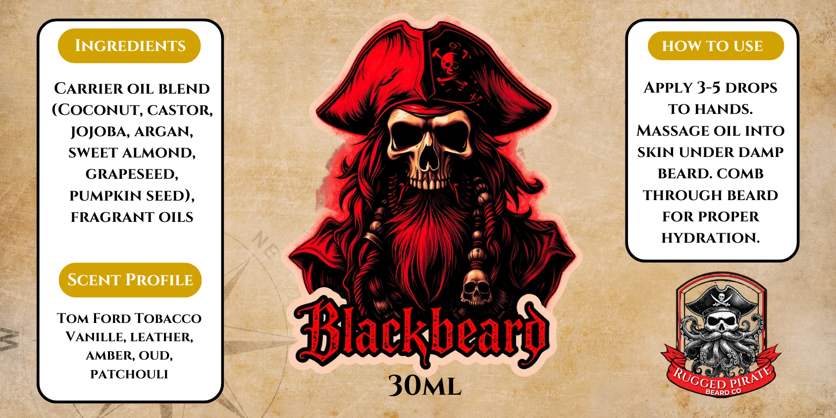 Whether you're battling the elements or celebrating a night at the tavern, our Blackbeard Beard Oil is your trusty companion for a bold and adventurous look. Join the ranks of legendary bearded marauders and make your grooming routine an epic quest! Embrace the spirit of the pirate life—order your bottle today!